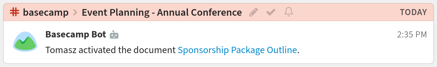You're done! Your Basecamp notifications may look like this: